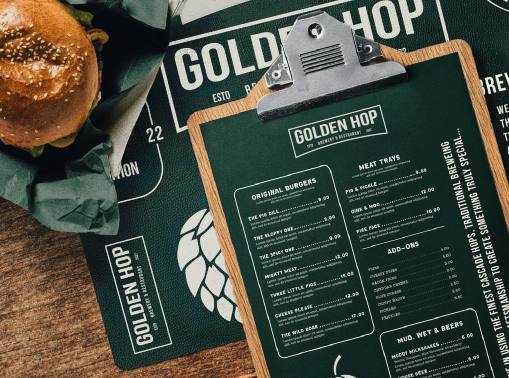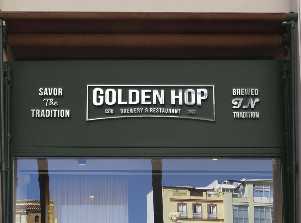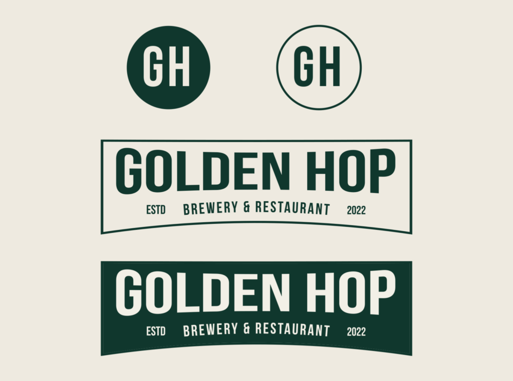 The bold sans-serif typeface was chosen for its modern yet timeless appeal, conveying reliability and strength. Customized letterforms for the ‘GH’ monogram and ‘Golden Hop’ logotype enhance brand uniqueness. This design blends tradition and innovation, creating a welcoming and polished identity that resonates with customers.